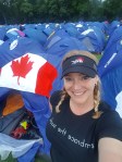 Sleep in tent city 🙂 Some of you are laughing! You can sleep in a hotel or dorm room any day, when do you actually ‘get’ to sleep in a tent? Side by side with a whole community of equally minded fit fundraisers and have the birds wake you in the morning. Everyone is so tired the silence is shockingly quieter than our usual camping with the wind on the side of a mountain. Okay, so I know some of you won’t take me up on that but I had to try.