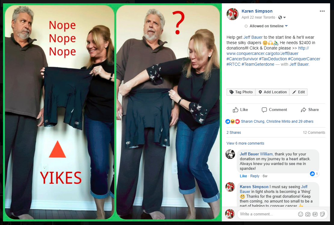 Sign up with a team! Most corporate sponsors will take on friends of employees. Joining a good size team creates arms of inspiration around your journey and the event. Many large teams have participants or companies who kick in extras. My corporate experience with #TDpeloton has included VIP tent, additional training rides, cycle mentors, private club rides, cool team jersey’s, fundraising events and introduced an amazing group of new fit friends to my life.