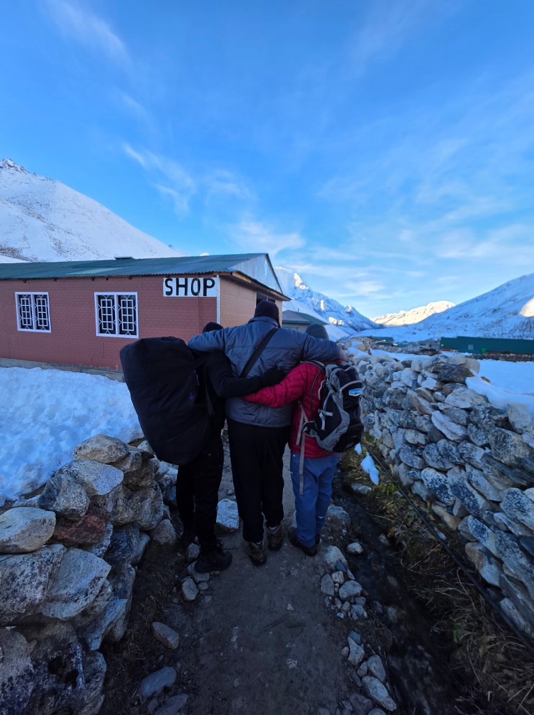 Writing this post I found a video I created on this walk behind Jeff, a very emotional video that reminded me how difficult it was to not hop into that helicopter with him. Tears from vows then, 14 hours later, tears from my man being evacuated from Dingboche.