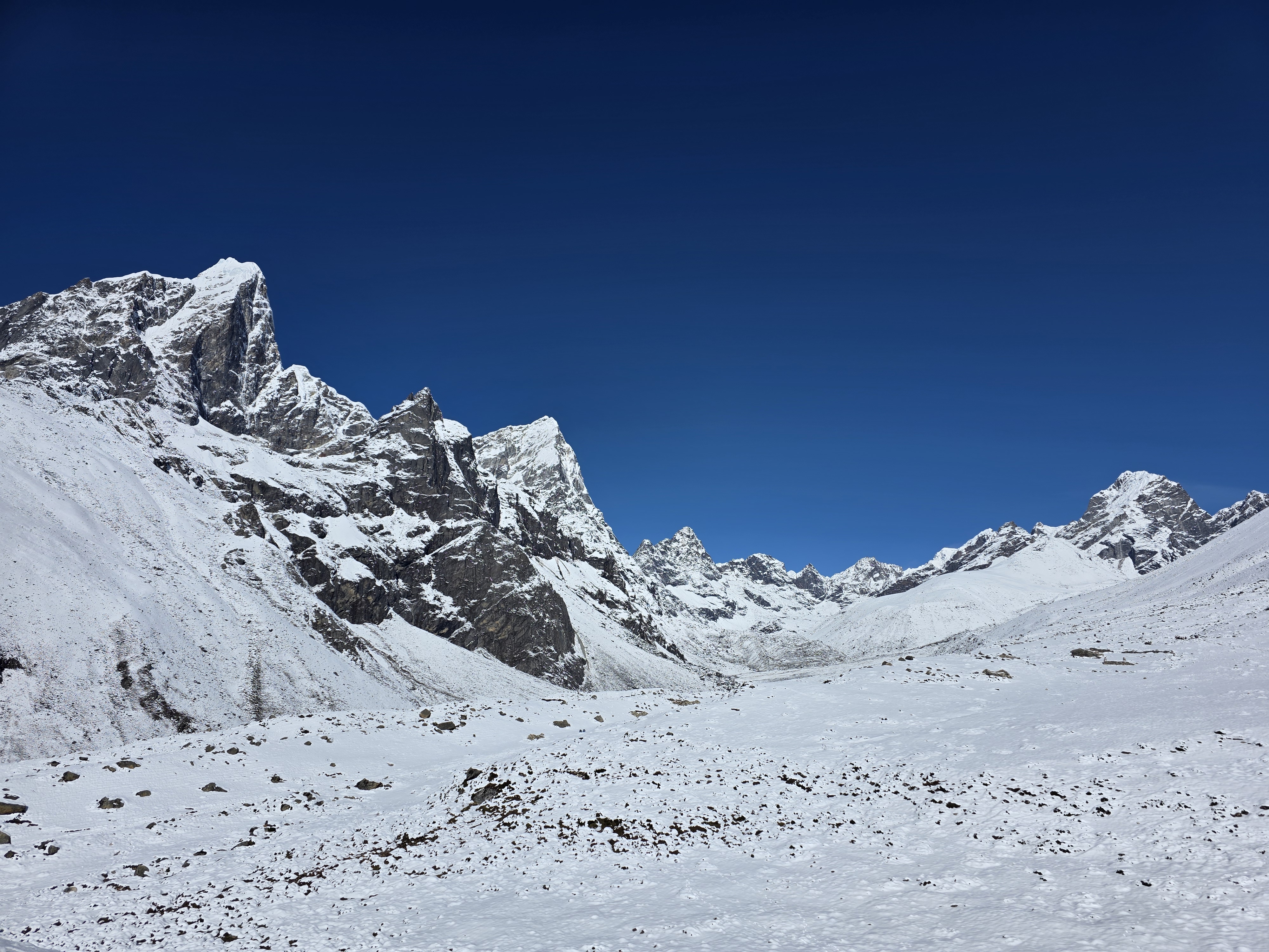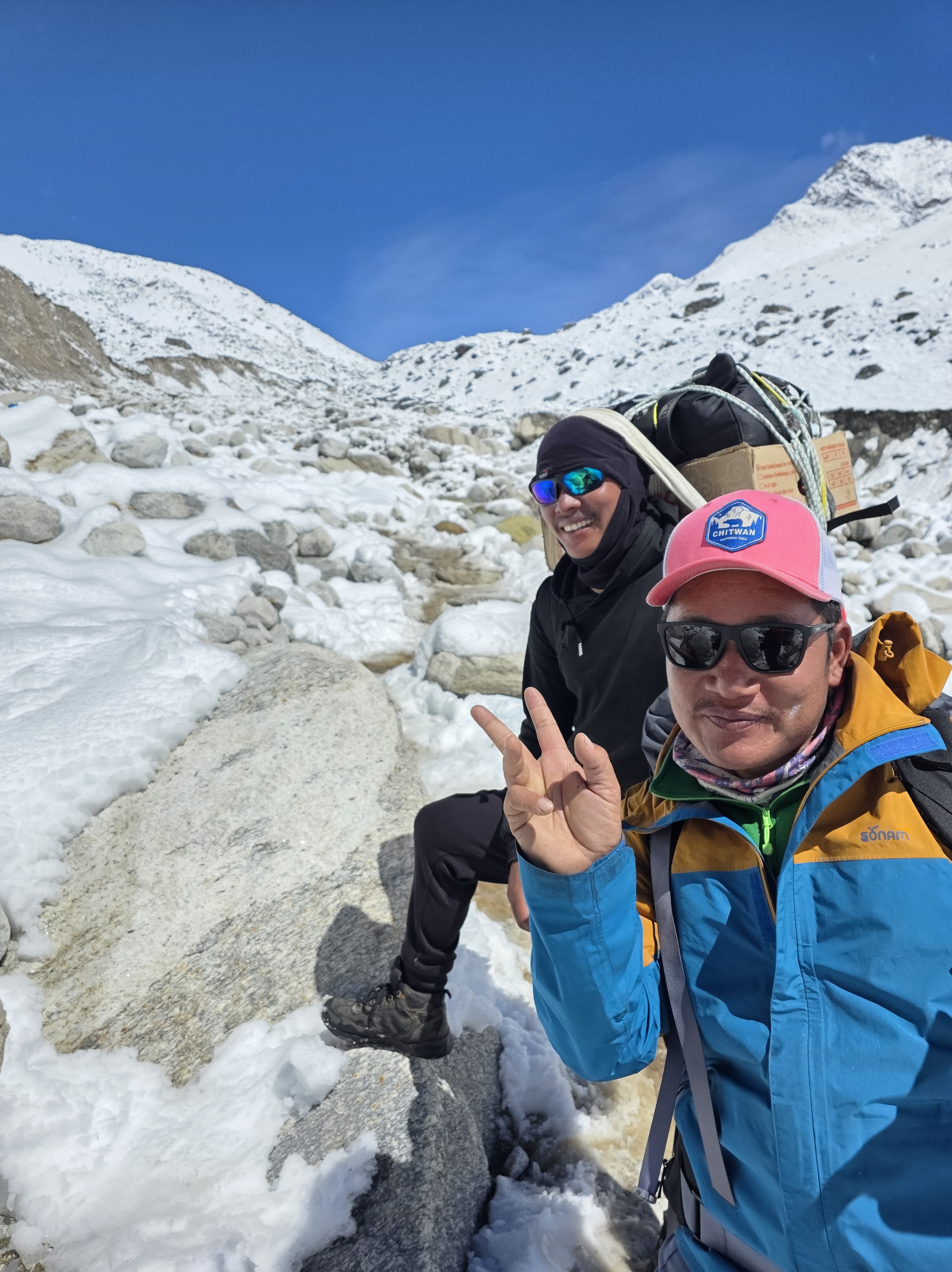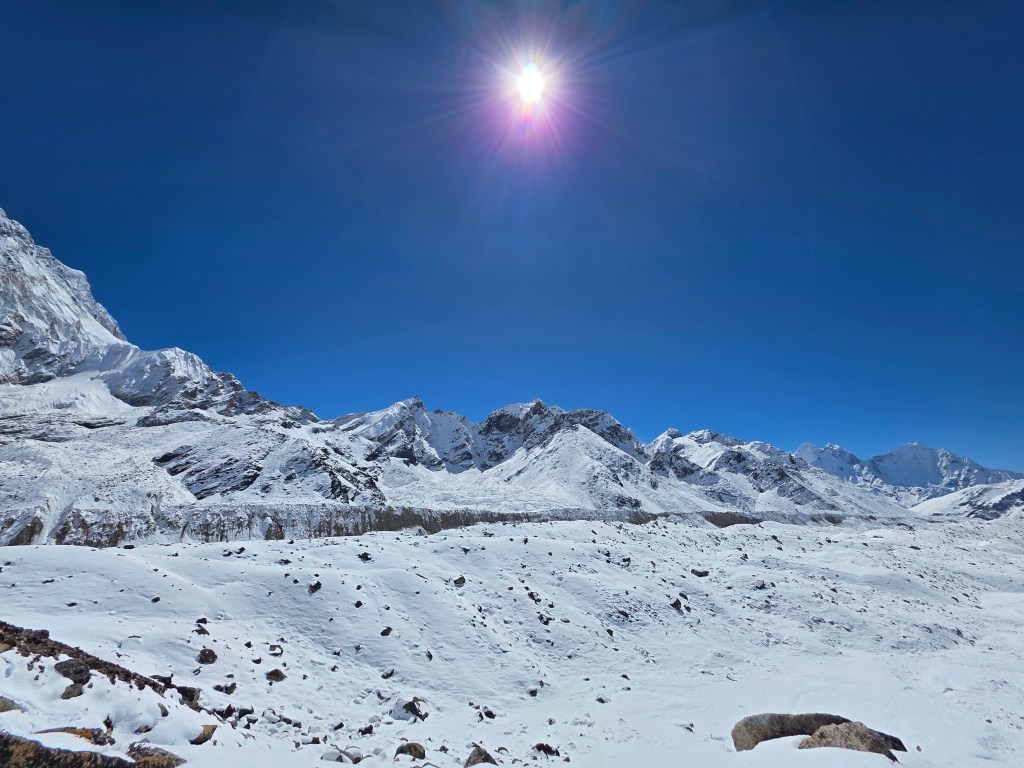 The trek back to the ‘hell hole’ of Gorak Shep goes well until the last hour. The reverse view of what I had earlier in the morning is a joy to watch. The sun is bright, it’s actually warm. I can’t believe people are passing by me just going to EBC, it’s going to be dark before they get back unless they rush which is hard in this altutude.
