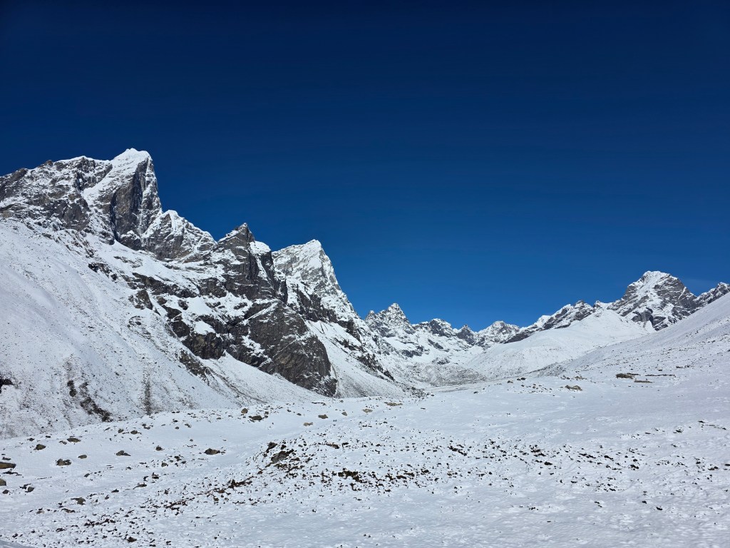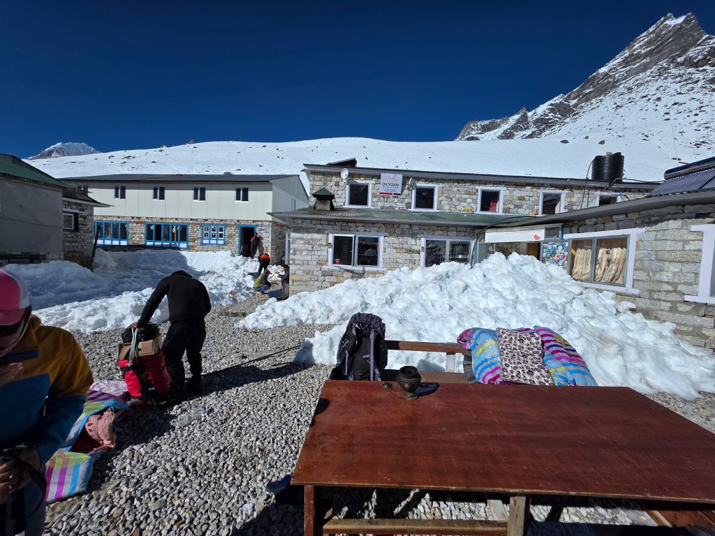 Arriving at Lobuche, the accomodations seem to be noticeably less hospitable. Is it that I am alone in my room? The cold? The food? Now it begins to feel like suffering but only when I’m in a building. Outside in the mountains fills me with joy.