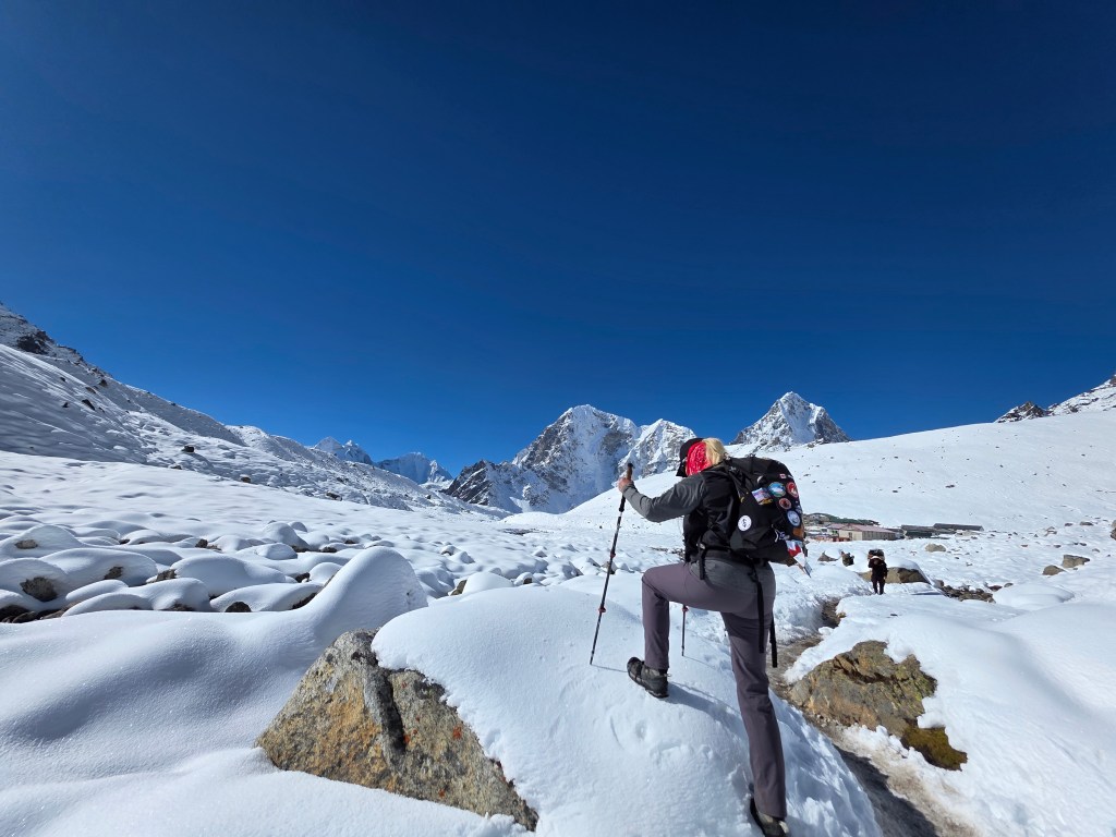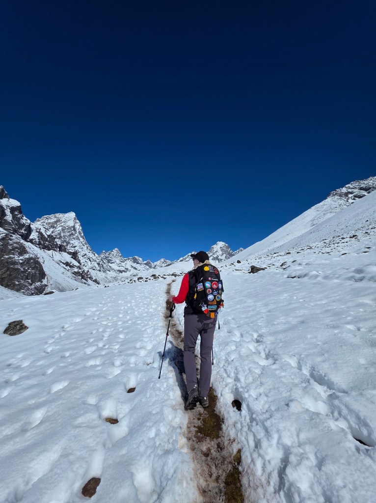We climbed so many mountains today! There was some internal swearing around every bend with the limited oxygen in the air. I was well above where I’ll sleep tonight but that’s also the rule when in high altitude. The scenery is beautiful but it seems to take a long flipping time to get to Gorakshep. I am so curious to see this village in the Himilayas that I’ve read so much about over the years.