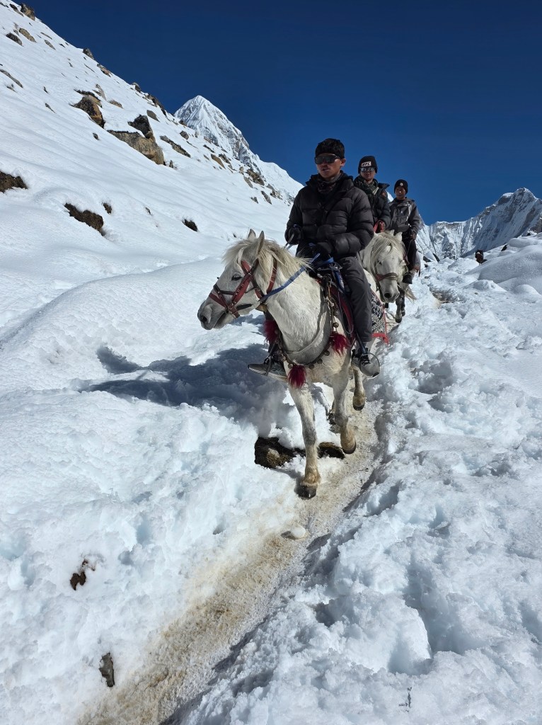 Today we head to Gorakshep. I start my day almost as soon as I got outside being kicked by a horse in my quad. Payback for all the selfies I put them in I’m guessing. Fortunately my leg is fine.