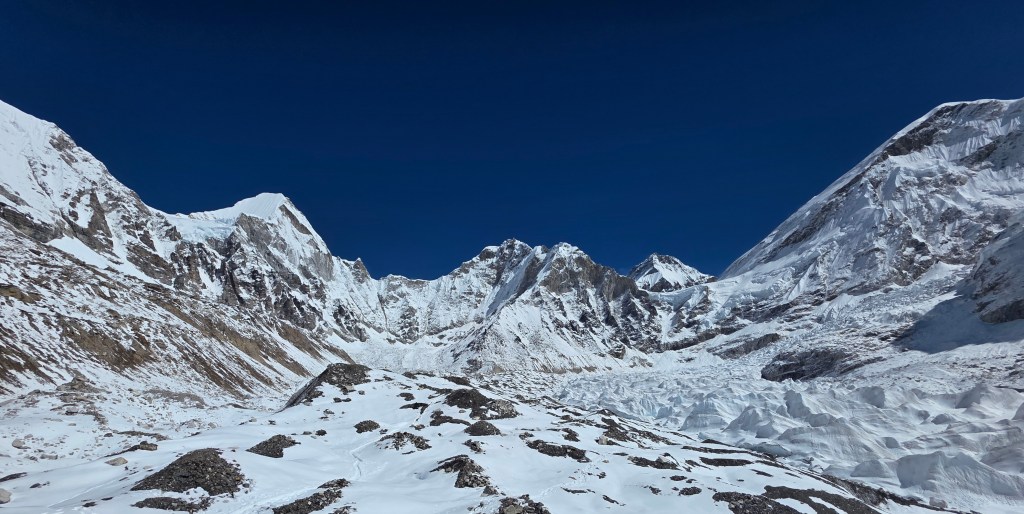 I was surprised to learn that EBC is a good 1000m below where we were climbing all morning. It’s in a valley surrounded by the worlds highest mountains. It must be the best place to park a tent if you have to stay there for 7 weeks training to do the summit of Everest.